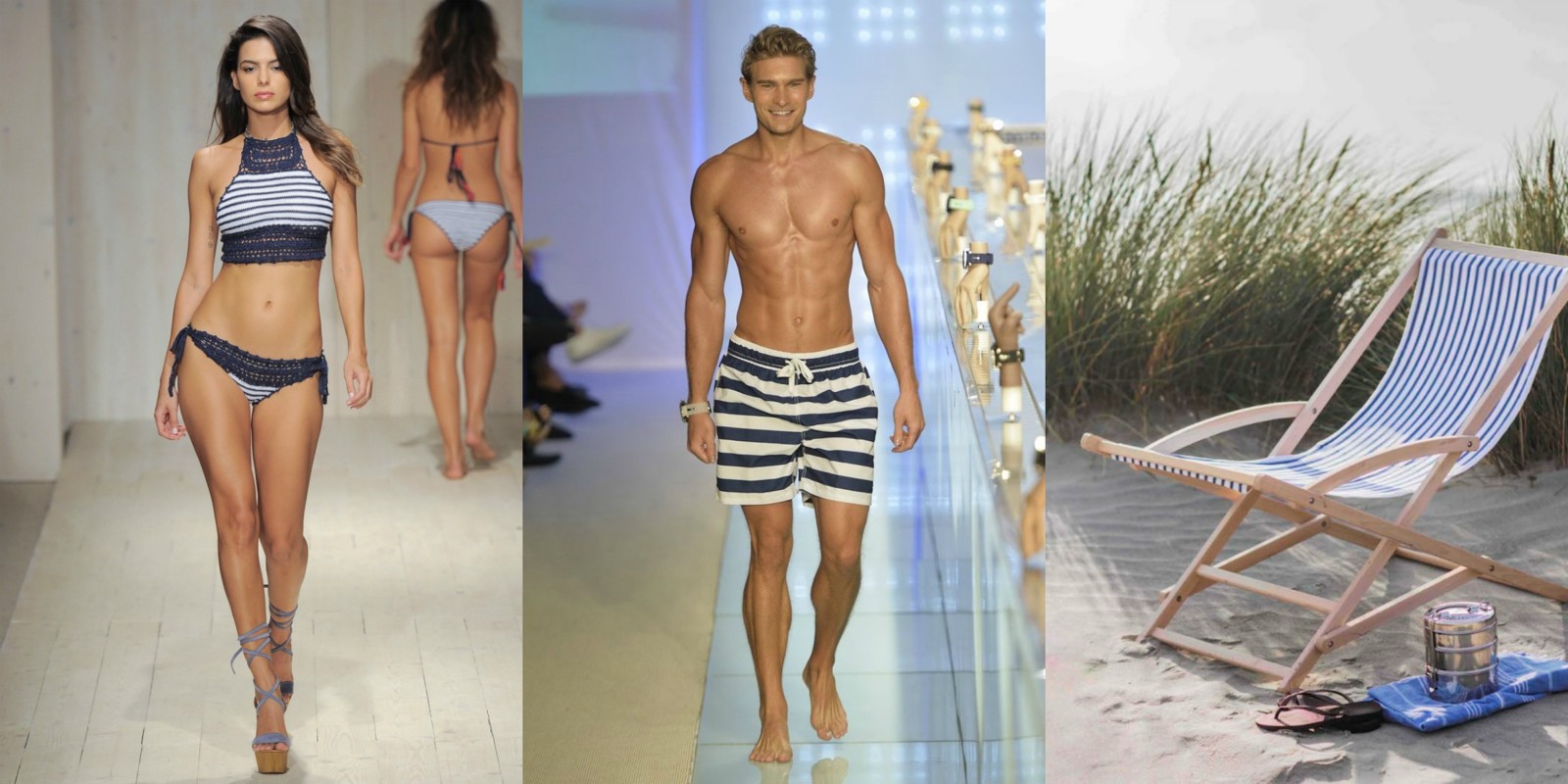 Črte že od nekdaj spremljajo morske dogodivščine, zato ni nič novega, da jih radi vidimo tudi v kombinaciji s kopalno modo. Izberemo lahko take v klasični modro-beli kombinaciji ali jo nadgradimo z zlatorumeno. Če želimo dopustniško vzdušje prenesti tudi v bivanjski prostor, ga popestrimo s črtastimi elementi, kot so krožniki, vaze, svetila, in celo z večjimi elementi, na primer hladilnikom. Kaj pa viseča mreža kar sredi naše dnevne sobe?