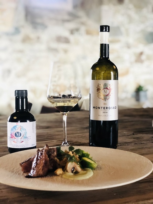 S 65 hektarji je Monte Rosso ena največjih posesti v kosu v zasebni lasti na obeh straneh meje, s 14.000 oljčnimi drevesi na 38 hektarjih pa je posestvo Monte Rosso daleč največji slovenski oljkar. Pri izbiri trte sta si podjetnika za glavno sorto izbrala malvazijo, za rdeče vino Monterosso Nero pa izjemno, a netipično trto, sorte montepulciano. Poleg belih in rdečih vin so v zadnjih letih trgu ponudili tudi vse bolj iskana peneča vina Monteclassico.