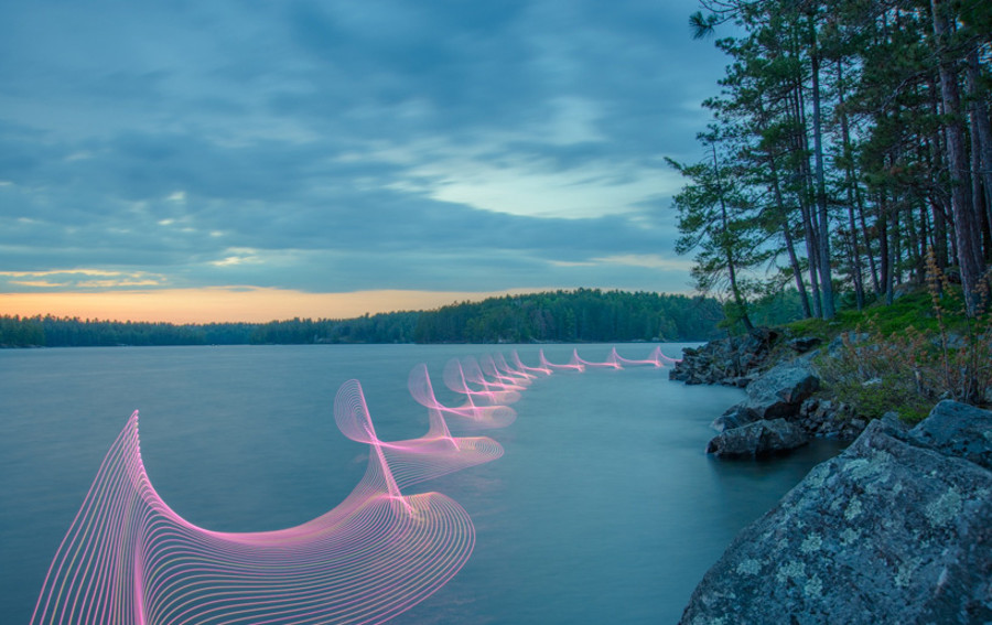 Fotograf Stephen Orlando predstavlja “Motion Exposure” serijo fotografij, na katerih je s pomočjo LED lučk ponazoril gibanje na gladini jezera.