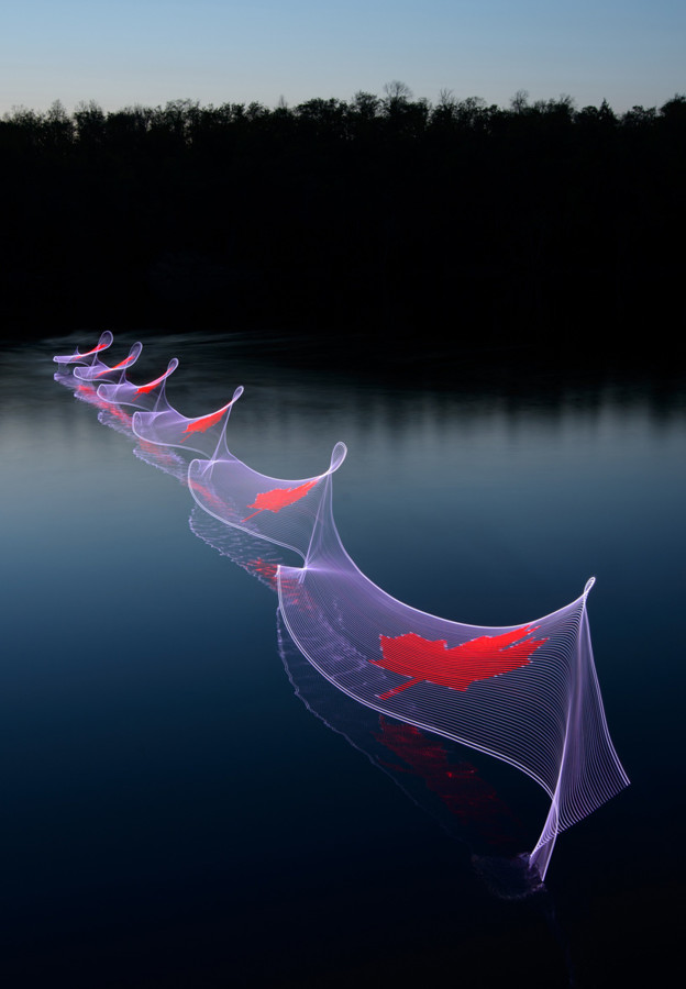 Fotograf Stephen Orlando je z namestitvijo LED lučk na kajak olimpijskega športnika Adama van Koeverdena, pod imenom “Motion Exposure” posnel serijo fotografij, na katerih so vidne svetlobne neonske poti po gladini jezera. LED lučke ponazarjajo gibanje kajaka kot tudi njegovo intenzivnost. S fotografijami je, kot pravi fotograf sam, hotel ujeti nekaj več ko le en sam trenutek – na fotografijah spremljamo zgodbo, s katero v domišljiji tudi sami potujemo po mirni gladini jezera. Fotografije so na voljo za nakup na fotografovi spletni strani, polovico zbranih finančnih sredstev pa bo fotograf doniral fundanciji Canoe Project Charity.
