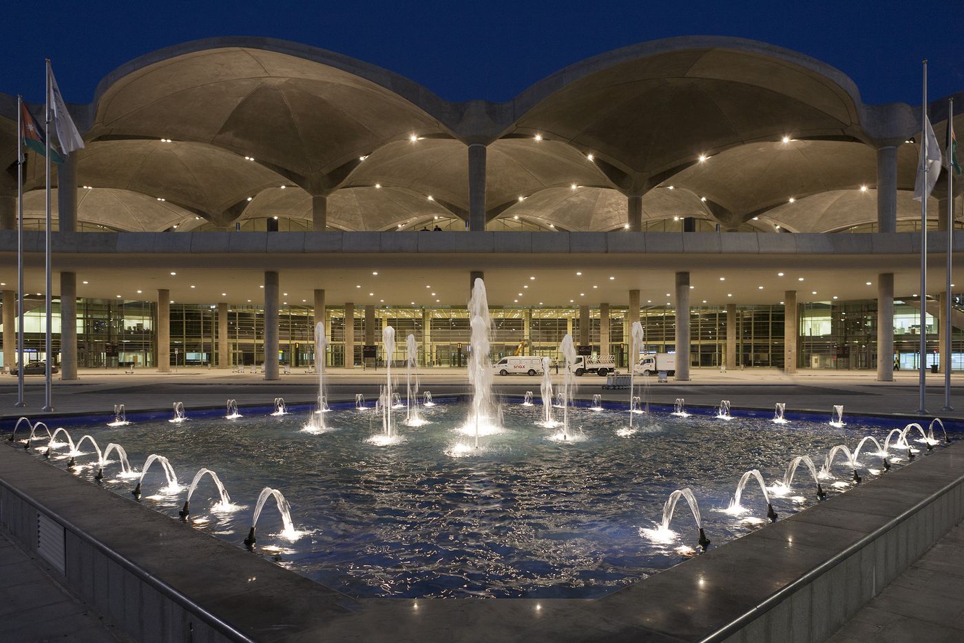 Obliko mednarodnega letališča v Amanu so navdihnili beduinski šotori. Vrh stavbe se ponaša z edinstvenimi betonskimi kupolami, ki potnike ščitijo pred močnim jordanskim soncem. Barve letališča odsevajo okoliško puščavsko pokrajino.