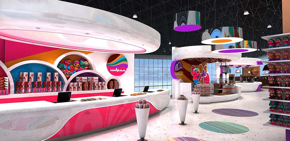 Candylawa je kot pravljična dežela sladkarij. Ustvarilo jo je novozelandsko podjetje Redesign Group, ob vstopu v trgovino pa se bosta pred nami odprli dve nadstropji, znotraj katerih najdemo različne kotičke, med katerimi lahko v enem oblikujemo čisto svojo liziko ali pa kotiček francoskih slaščic, ki bodo navdušili starše, seveda pa tudi najmlajše sladkosnede.