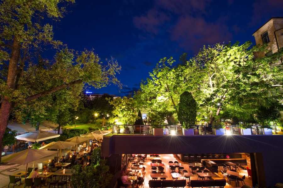Z razlogom se AS uvršča v vse preglede najlepših vrtov ne samo v prestolnici, temveč tudi po Sloveniji nasploh. Lastnik Svetozar Raspopović - Pope je z razlogom ponosen na teraso v prvem nadstropju te ljubljanske kulinarične institucije, kjer so mizice razporejene okoli gromozanskega drevesa, intimno in subtilno pa prostor delijo še lonci povečini sredozemskega rastja. Na terasi je tudi poseben točilni pult, kjer natakarji mešajo koktajle in točijo vina, ki se ujemajo s Popetovimi mesnimi in ribjimi mojstrovinami.