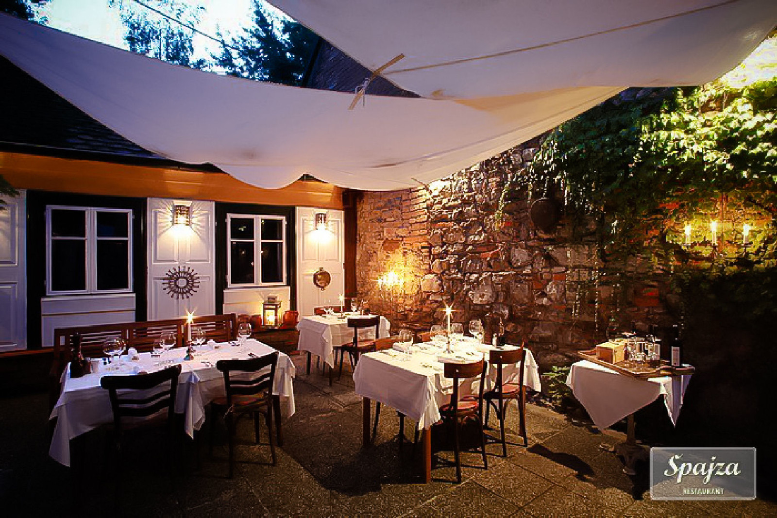 Podobno kot Shambala tudi Špajza velja za eno bolj romantičnih restavracij, za kar se lahko zahvali svoji zeleni terasi, ki je z visokim starim grajskim kamnitim zidom povsem ločena od prometne Karlovške ceste. Vrt tako kot notranji del restavracije ustvarja domačno, prijetno vzdušje, ki ga še podkrepi kulinarika, po kateri Špajza že leta slovi. Na Špajzini terasi neredko potekajo tematski kulinarični dogodki – od vinskih degustacij do žar akademij.