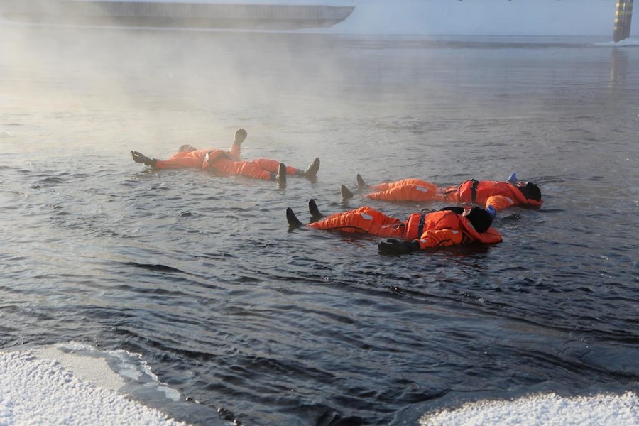Lebdenje v ledeni vodi, Savolinna, Finska