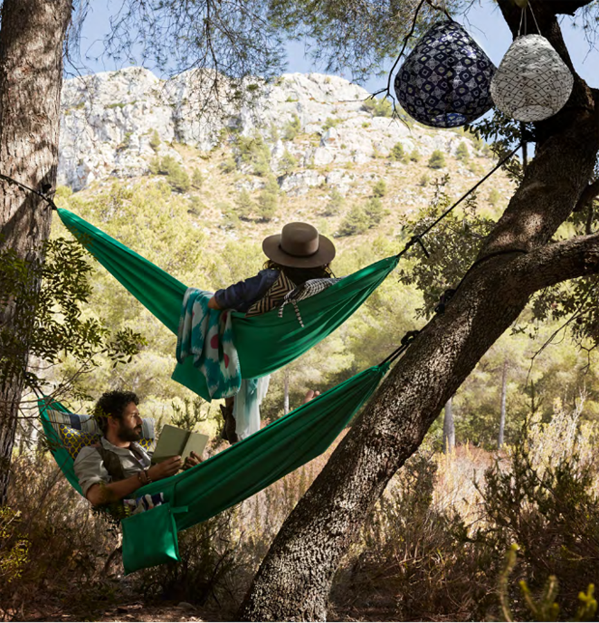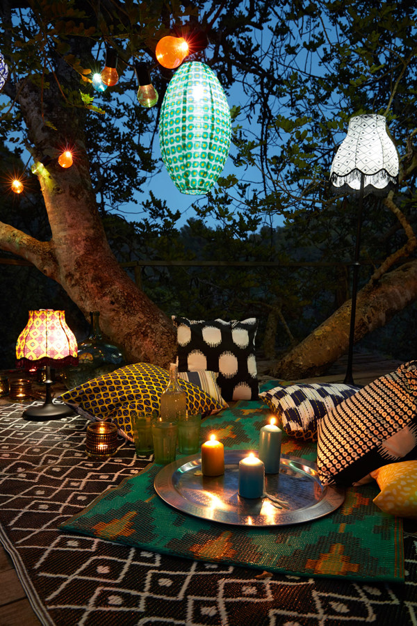 Ne glede na to ali se odpravljamo na gozdno kampiranje, zabavo na plaži ali na lastno dvorišče, bo nova kolekcija pohištvenega giganta Ikea popestrila naša druženja na prostem. Kosi poletne kolekcije, ki navdih črpa v južno-afriških vzorcih in motivih, so na žalost številčno omejeni. Vključujejo vse od lahkih sedežnih garnitur, senčnikov in lučk, pa do sveč, piknik košar, krožnikov, kozarcev, blazin, in prtov, ter so že na voljo v Ikeinih trgovinah. Nam so zelo simpatične tudi viseče mreže v turkizni barvi.