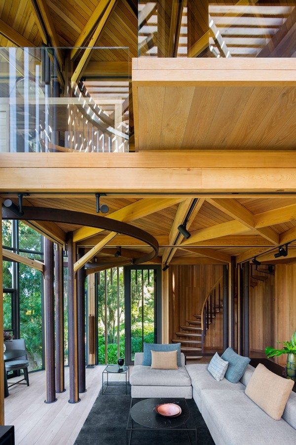 Hiša Parmaan je skoraj v celoti zgrajena iz lesa rdeče cedre, medenine in jekla. Arhitekti so vse materiale namenoma pustili nezaščitene, da se bodo s časom postarali in se bolje zlili z drevesi v okolju.
