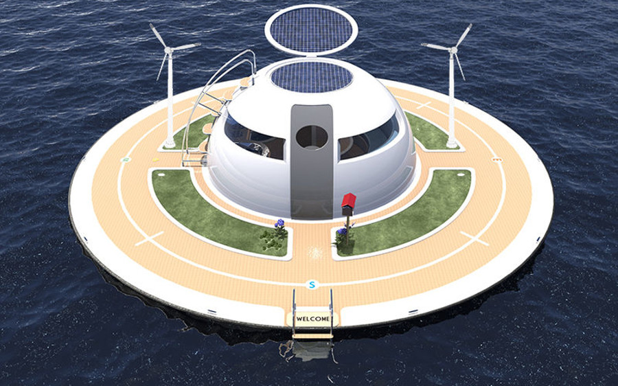 V celoti trajnostno naravnan plavajoči dom, ki po obliki bolj kot na dom spominja na pristanek nezemljanov, je hiša, ki je sestavljena iz dveh sferičnih lupin. Lupini, ki ju ločuje plavajoči disk omogoča življenje nad vodo, kjer se nahaja dnevni prostor, kuhinja, jedilnica in okrogla terasa, druga polovica, kjer se nahaja kopalnica, spalnica in steklene zunanje stene pa omogoča sproščujoč razgled in udobno življenje tudi pod vodo.