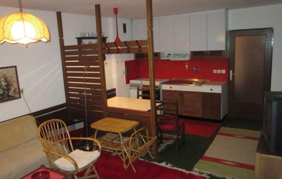 Stanovanje v bloku v predmestju Kranjske Gore se je pred prenovo ponašalo s prvotno podobo iz časa svojega nastanka – težkimi tekstilnimi talnimi oblogami, temnim lesenim pohištvom in slabo osvetlitvijo. Pogumna lastnika sta v njem videla potencial, s pomočjo arhitektke Nine Štajner pa sta ga spremenila v svetel, pisan počitniški apartma s skandinavskim pridihom. Iz projekta je razvidno, da sta lastnika velika pristaša nordijske in vintage estetike, hkrati pa obožujeta močne barve.