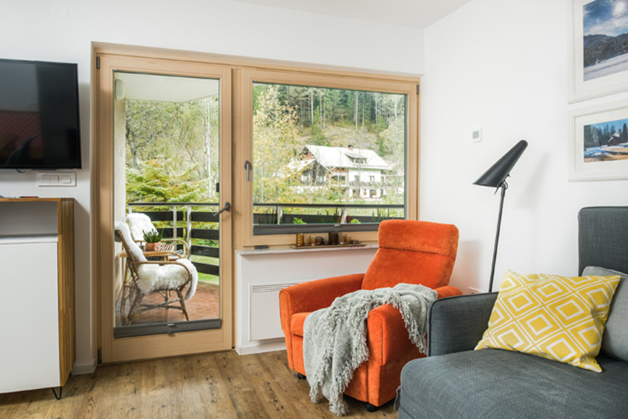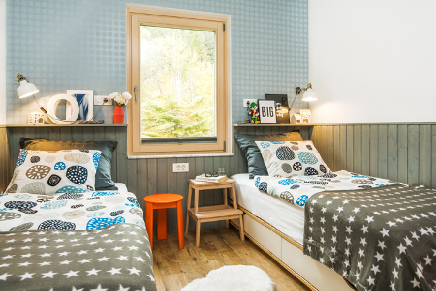 Blokovsko stanovanje v Kranjski Gori je pred prenovo odsevalo osemdeseta leta, s pomočjo arhitektke Nine Štajner pa je zasijalo v novi luči. Rezultat prenove je svetel počitniški apartma, opremljen v skandinavskem slogu z živahnimi pisanimi poudarki.