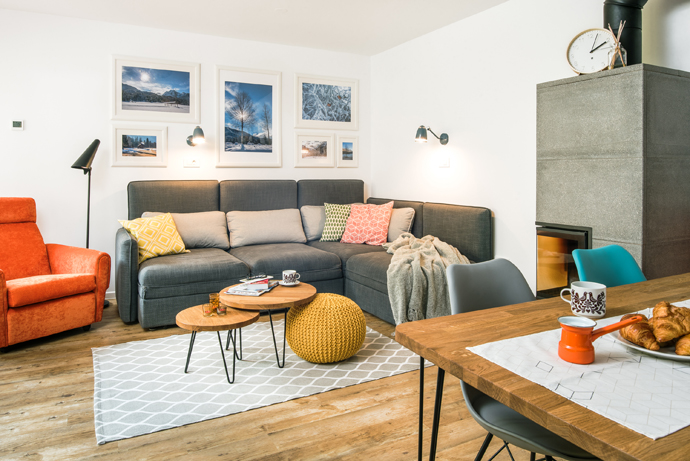 Prenovljeno pisano skandinavsko stanovanje v Kranjski Gori