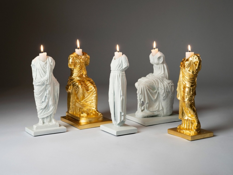 Oblikovalec je vzel nekaj najbolj slavnih antičnih del iz muzejev kot je Louvre in jih spremenil v vsakdanje predmete. Nekaj vrhuncev nove dizajnerske serije predstavljajo stoli, ki so pravzaprav obrnjeni kipi, luči v obliki doprsnih kipcev grških bogov ter svečniki v obliki antičnih teles. Kako dotične umetnine izgledajo, si lahko ogledamo v spodnji galeriji.