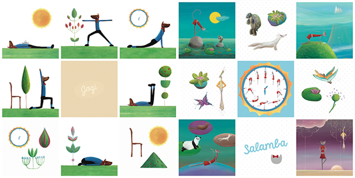Muca Salamba otroke popelje v enostavno začetno vadbo joge – Pozdrav soncu, kuža Jogi pa je primeren za pogumne in močne jogi mojstre. Obema igračama so priložena natančna slikovna navodila za izvajanje vadbe, kratka sproščujoča meditacija ter učne kartice, ki otroke poleg joge izzovejo tudi v spominu in krepitvi njihove pozornosti. Kljub otroškemu pridihu, pa so vaje primerne tudi za odrasle.