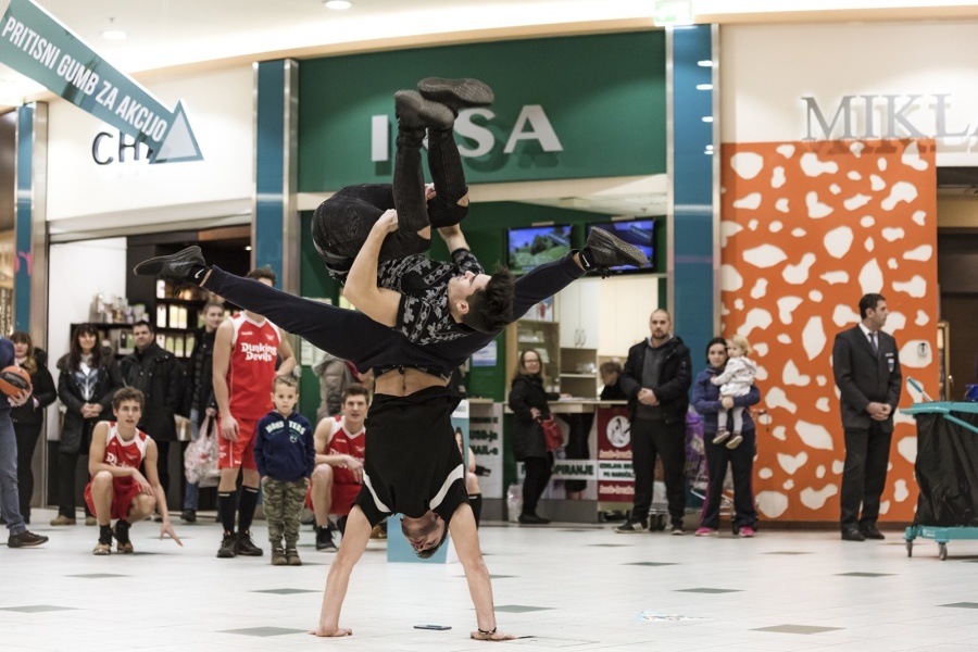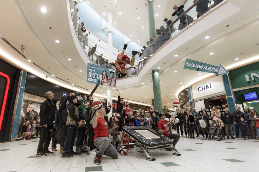 Nakupovalno središče se je v trenutku prelevilo v cirkuški oder. (Foto: Katja Pokorn)