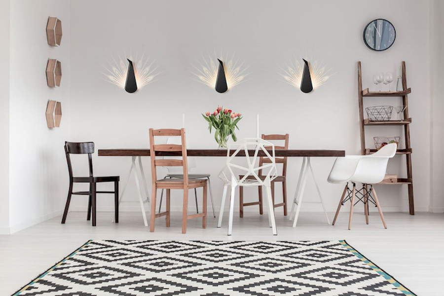 Čeprav so luči narejene iz aluminija, so na prvi pogled krhke, kot bi bile narejene iz papirja, in so, kadar so ugasnjene, videti kot origami. Toda ko jih prižgemo, bitja pridejo do svojega pravega izraza – na steni namreč odsevajo njihove značilnosti, bodisi rogovje bodisi peresa.