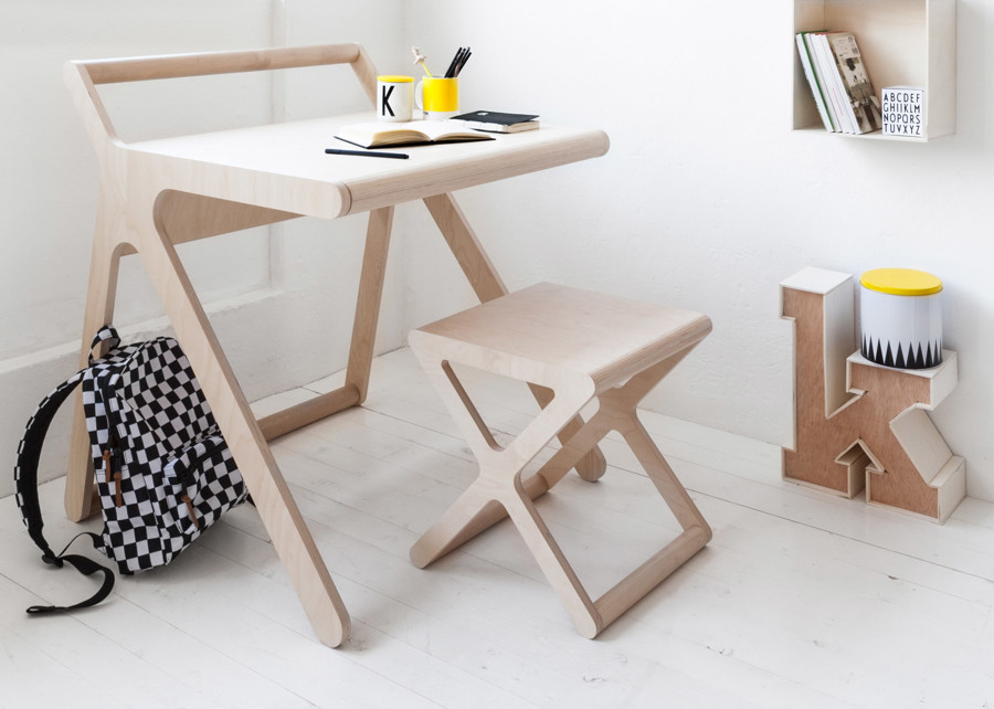 Rafa-kids miza je nastavljiva v dveh različnih položajih in se odprta uporablja kot skriti kotiček za iPad, zvezke in ostale potrebščine. Narejena je iz finskega brezovega lesa in furnirja in je na voljo v naravni, beli in črni barvi. Cena: 685 evrov.