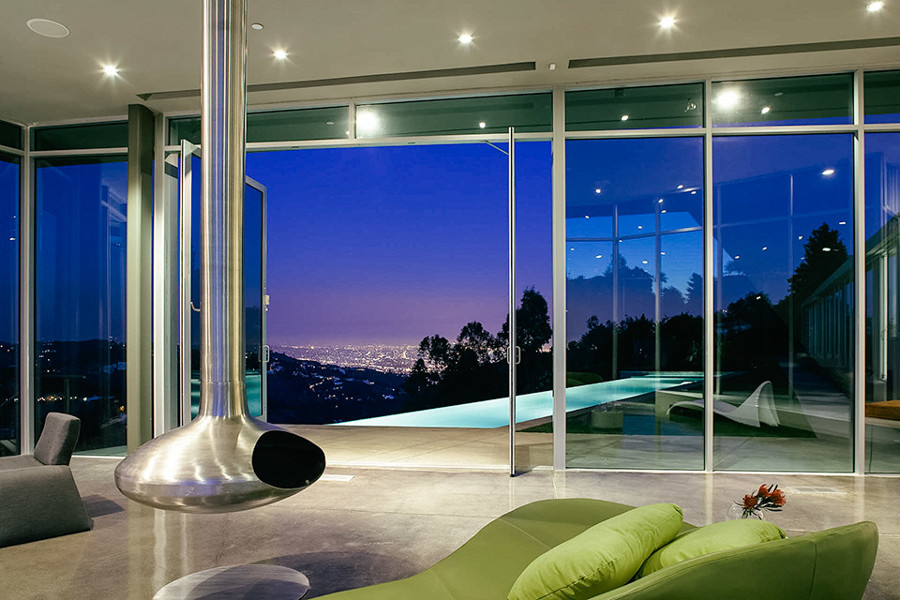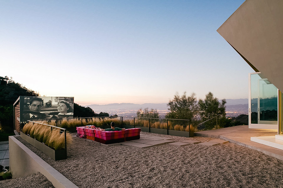 Pri Belzberg Architects so oblikovali hišo, ki ima zunanjo steno posebno zasnovano tako, da se lahko na njej predvaja tudi filme. Hiša, ki stoji na Ridgeline, Hollywood Hills v Kaliforniji, je svojo lokacijo odlično izkoristila, saj zaradi linearne postavitve omogoča ogled kina kar na prostem, odmaknjenega stran od vsakodnevnega vrveža.
