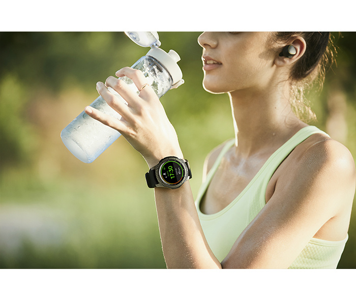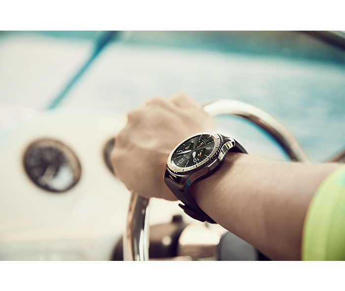 Njena prefinjenost, brezčasna oblika in revolucionarna notranjost dajejo občutek ure visokega razreda. Napredne funkcije – od merilca srcnega utripa, vgrajenega GPS in zvočnika do neposrednega dostopa do vseh aplikacij, ki jih potrebujemo – se prepletajo z obliko ure. Ravno zato je uporaba ure preprosta, z njo sprejemamo klice in jih zavračamo, saj le zasučemo obroč. Izdelana je za to, da jo lahko več dni uporabljamo brez povezave s telefonom ali polnjenja. Z urama odpornima na vodo in prah – klasično Samsung Gear S3 Classic in robustno Samsung Gear S3 Frontier se bomo počutili svobodni, kjer koli že bomo.