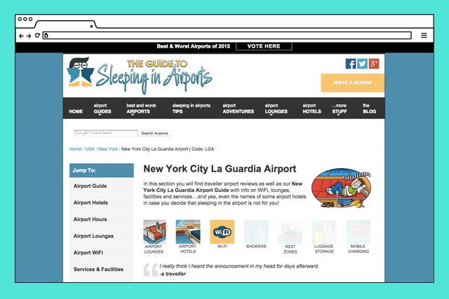 Sleeping In Airports vključuje bazo podatkov letališč po vsem svetu in je priročen za vse, ki smo zaradi prestopanja kdaj pa kdaj primorani kakšno noč preživeti ravno na letališču. Koristne informacije o WI-FI lokacijah, polnilnih postajah za mobilne telefone in priljubljenih kotičkih za spanje, bodo zagotovo pomagale, da nam čas do naslednjega leta mine hitreje. Več pa na sleepinginairports.net.