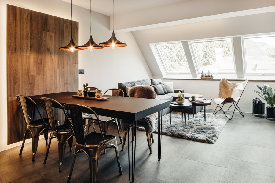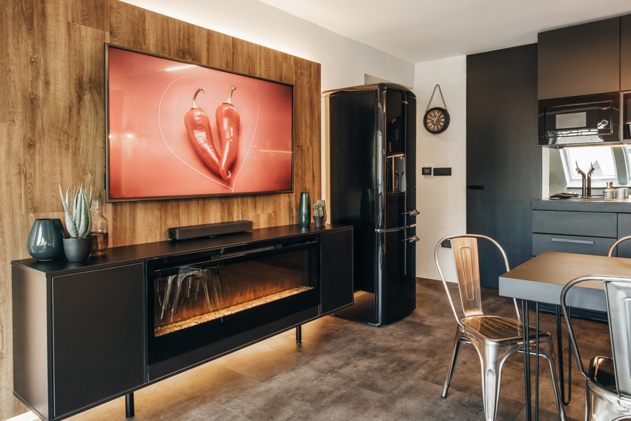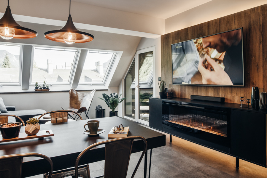 Slovenska arhitektka in notranja oblikovalka Nina Štajner je staremu stanovanju v Kranjski gori vlila povsem novo življenje. Rezultat prenove je povsem sodobna, modno črna, intepretacija gorske koče.