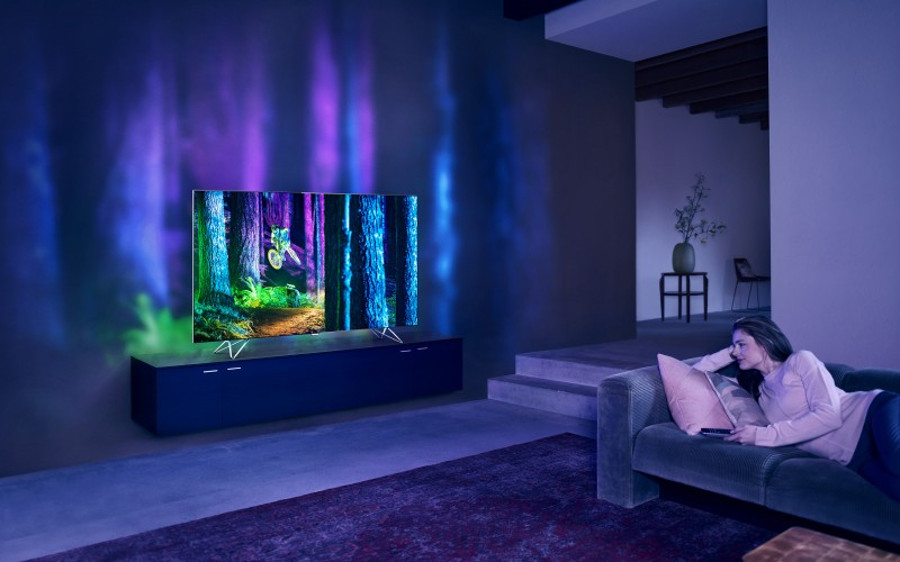 Dogajanje na zaslonu se s projeciranjem slike razširi tudi na steno za televizorjem in pričara resnično poglobljeno doživetje. Gre za doživetje svetlobe in njenega gibanja kot še nikoli doslej. AmbiLux namreč med gledanjem televizije na steno v ozadju razširi kar sliko dogajanja z zaslona, s čimer ustvari živahen sij svetlobe in dogajanja. Zahvaljujoč moči devetih piko-projektorjev na hrbtni strani tankega ohišja televizorja dobimo skupaj s sliko 4K Ultra HD učinek skoraj neprekinjene razširjene slike po celotnem prostoru.