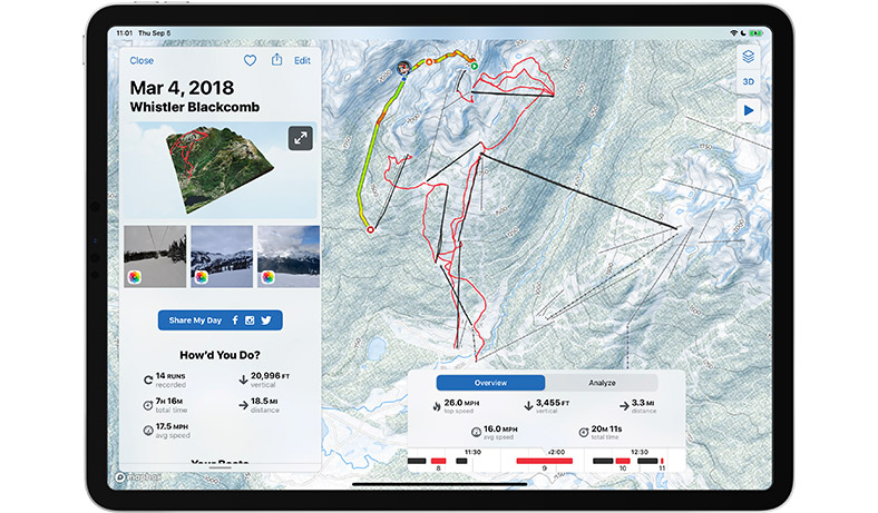 Slopes sledi vožnjam smučarjev in deskarjev, razlikuje med vožnjo z vlečnico in spustom, beleži statistike, kot so hitrost, nadmorska višina, prevožena razdalja in še več. Lahko jih primerjamo in delimo med prijatelji. Aplikacija vsebuje zemljevide smučišč in poročila drugih uporabnikov o razmerah na progah, namenjena pa je tudi za smučarsko pohodništvo izven urejenih prog. Na voljo je le za iOS.