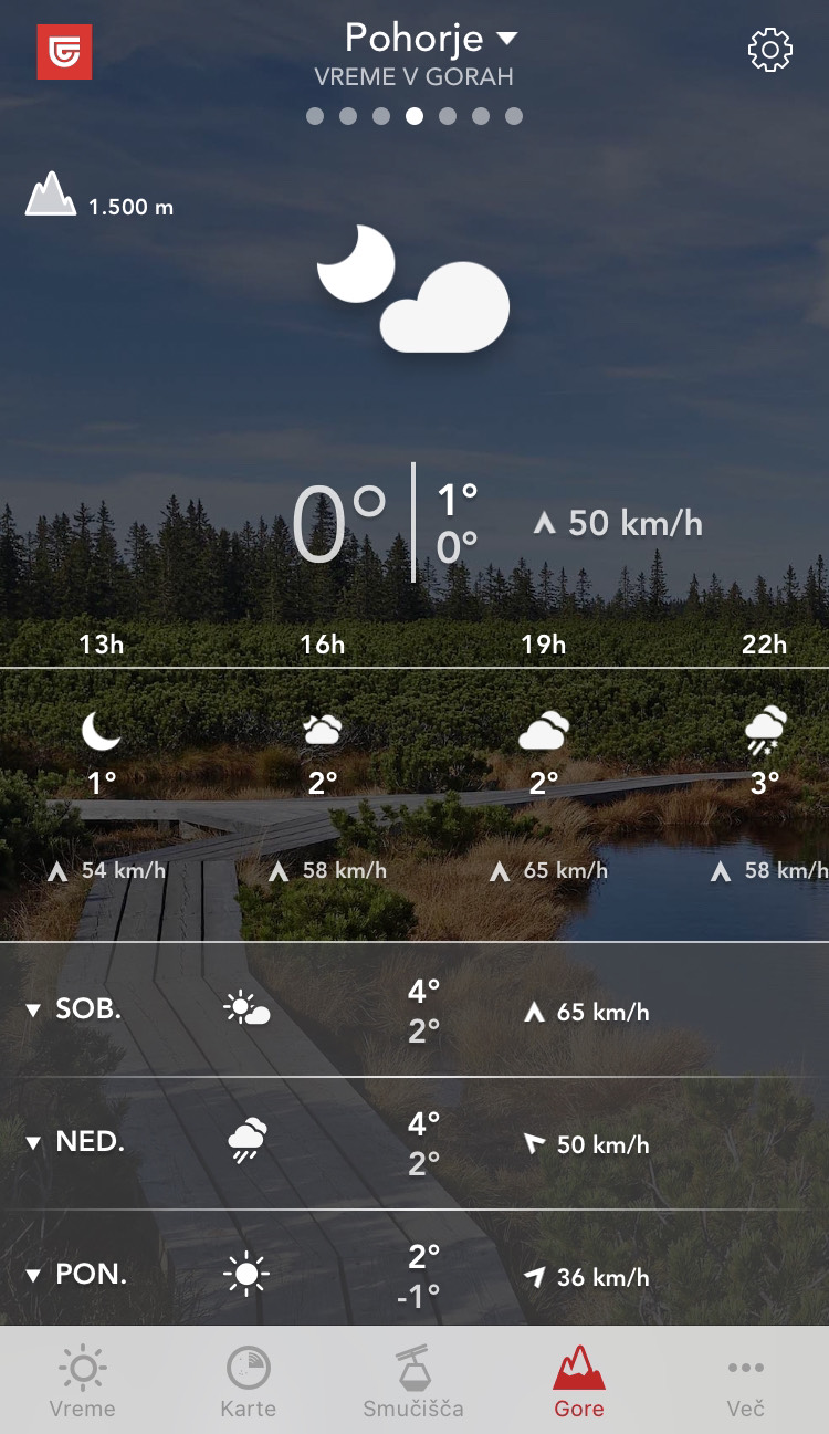 Gre za dodelano aplikacijo, ki poleg natančnih vremenskih informacij (radarska slika padavin, temperatura, oblačnost, hitrost vetra in verjetnost toče) vključno z urno in dnevno napovedjo za vremensko stanje v gorah sporoča stanje na 21 slovenskih smučiščih, temperature kopalnih voda, omogoča pa tudi dostop do 41 spletnih kamer.