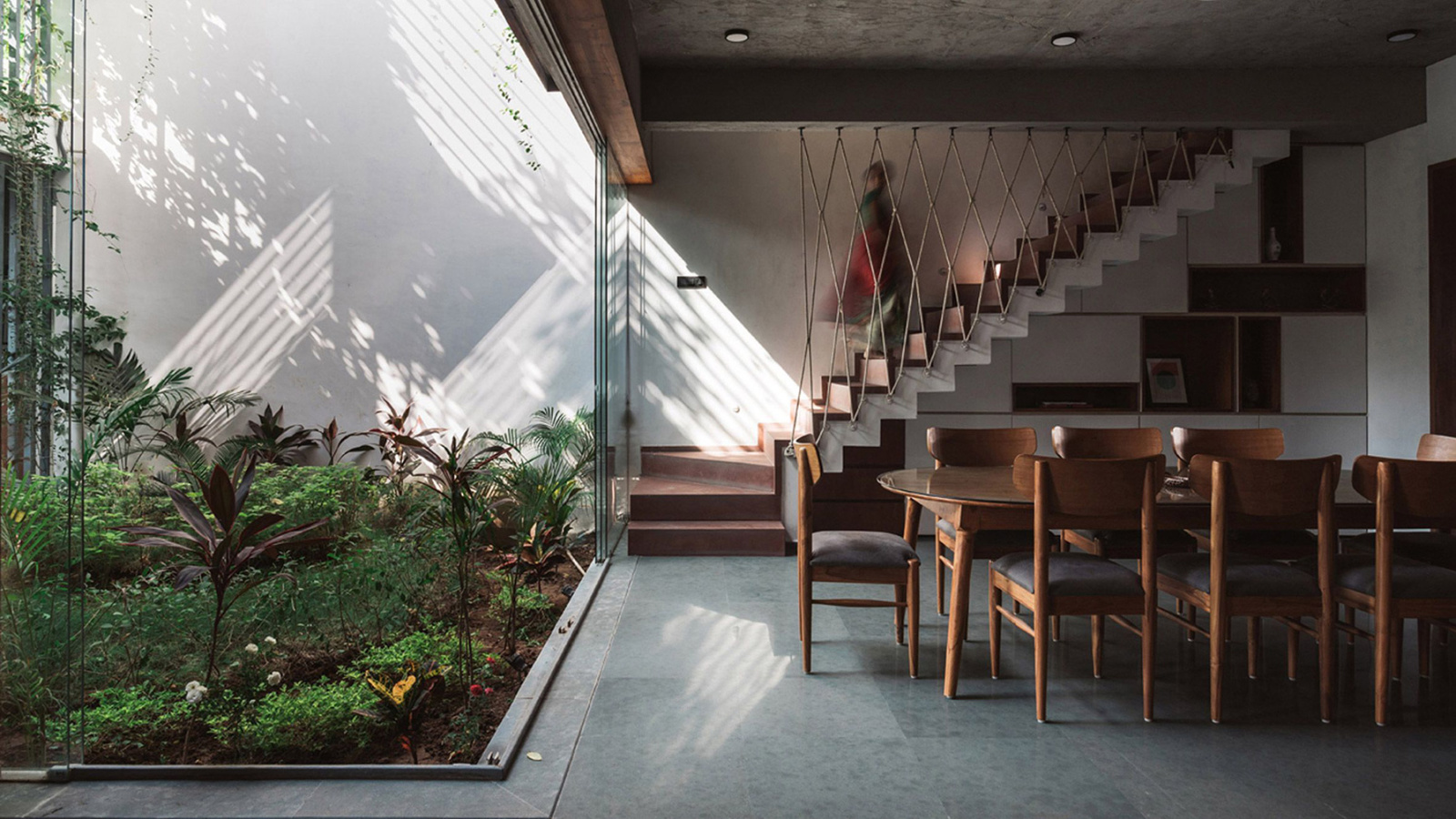 V indijskem mestu Surat je lokalni arhitekturni studio Neogenesis+Studi0261 za naročnika, ki obožuje naravo, oblikoval posebno hišo. V njej lahko iz jedilnice opazujemo notranji vrt, ki spominja na pravo malo džunglo.