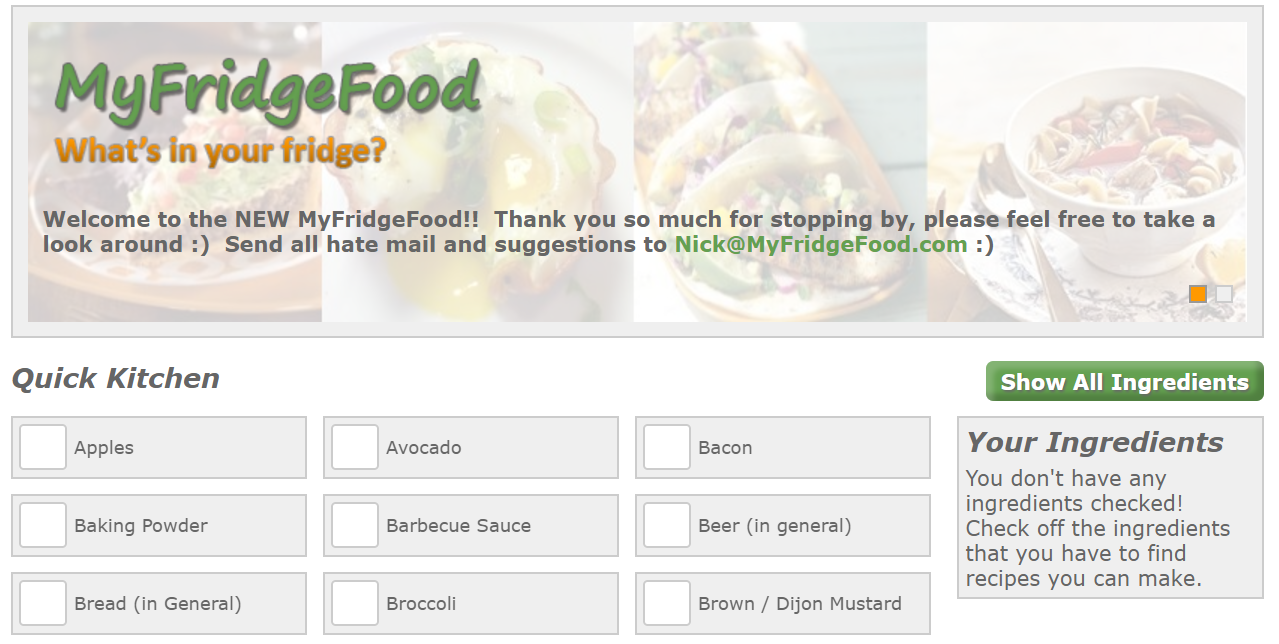 Pogosto nam v hladilniku ne ostane veliko hrane, hkrati pa nimamo časa za nakupe. My Fridge Food nam pomaga ugotoviti, katero jed lahko ustvarimo iz ostankov.