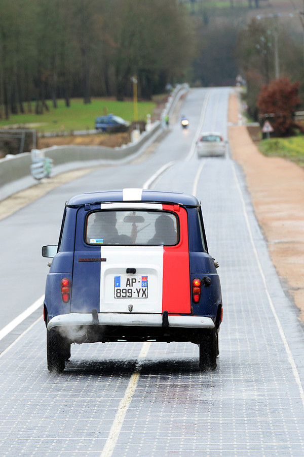 V Franciji so v prazničnih dneh svečano otvorili cesto prihodnosti – cesto, v katero so vgrajeni solarni paneli, katerih ulovljena energija omogoča polnjenje električnih vozil.