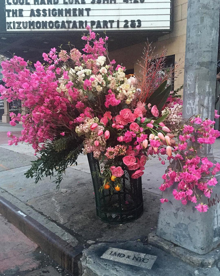 Nadobudni in domiselni oblikovalec Lewis Miller se je odločil, da bo v New Yorku prazne smetnjake 'oblekel' v čudovite šopke pisanih in raznovrstnih rož, ki bodo popestrili urbane ulice velemesta. Miller, sicer znan po svojih čudovitih aranžerskih spretnostih na porokah in zabavah, je svoj projekt, imenovan Flower Flash, izvedel potem ko je že nekaj let razmišljal, kako bi tudi drugim ljudem, meščanom polepšal dan in jih razveselil na nekoliko drugačen, vendar povsem preprost način.