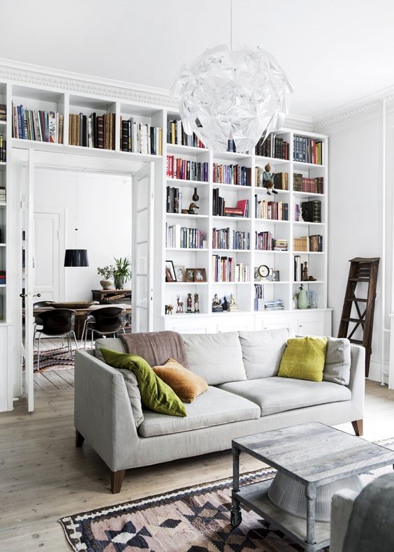 S policami, ki segajo od tal do stropa, sobi dodajo karakter. S tem bomo dobili dovolj prostora za vse svoje knjige in imeli svojo osebno knjižnico, ki nam jo bodo vsi zavidali.
