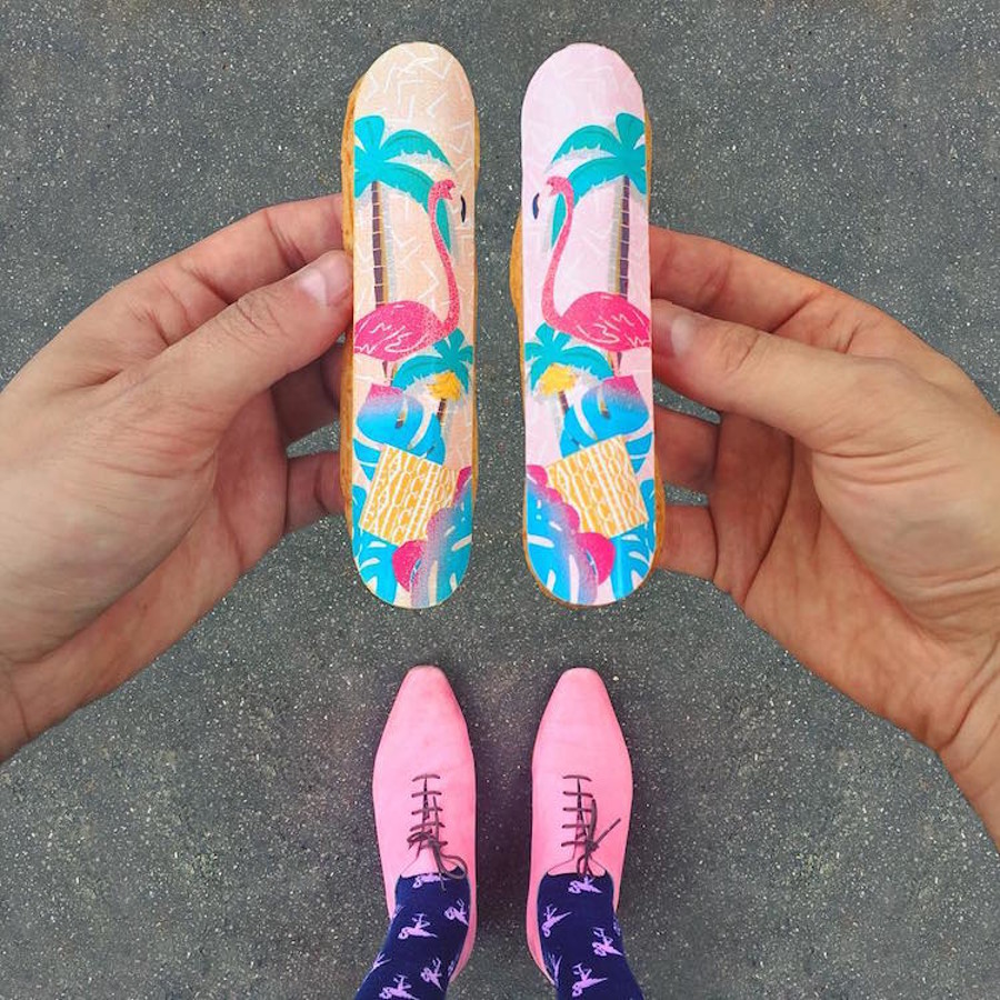 Pravijo, da iz Pariza izvirajo same čudovite, šik in fine stvari. Seveda med njih sodijo tudi pariške slaščice in modni čevlji. In po novem tudi serija fotografij, ki so kombinacija obojega - slaščic in čevljev namreč. Slednji dve stvari, ki jih v življenju ni nikoli preveč, sta navdihnili tudi grafičnega oblikovalca Tala Spiegla. Apetit po mamljivih slaščicah in živobarvna garderoba sta ga namreč pripeljala do ideje za živahno serijo fotografij, ki v zadnjem času na socialnem omrežju Instagram pod imenom Desserted_In_Paris navdušuje že skoraj 90 tisoč sledilcev. Tal namreč na svoj profil vsakodnevno objavi novo slaščico v kombinaciji s čevlji ujemajoče se barve, zanimivo pa je, koliko različnih slaščic premorejo pariške slaščičarne ter koliko čevljev šteje fotografova omara!