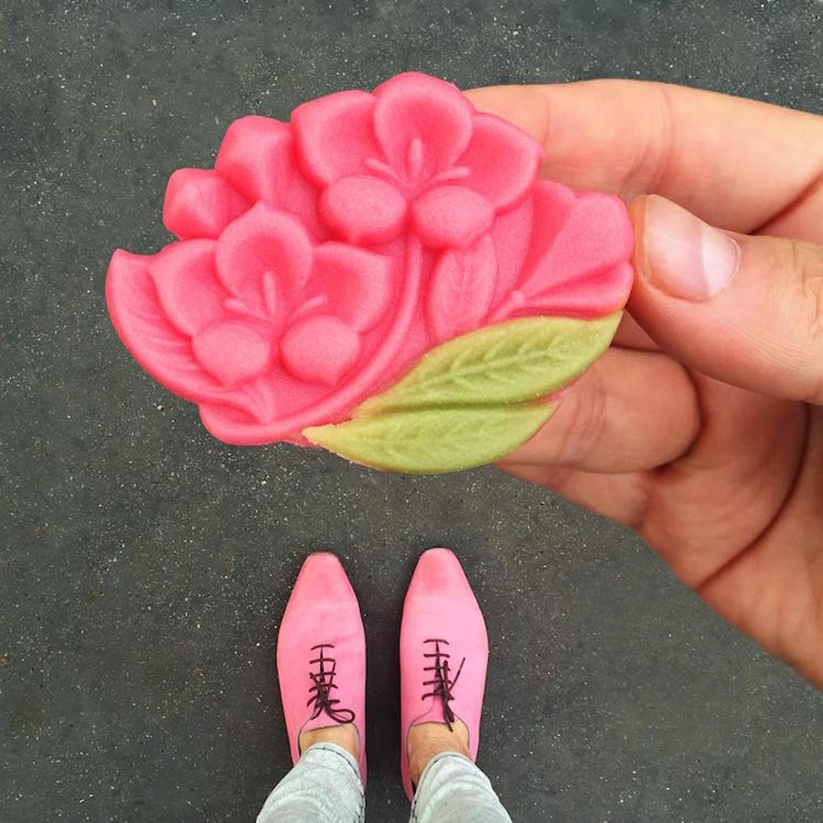 Apetit po mamljivih slaščicah in živobarvna garderoba sta grafičnega oblikovalca Tala Spiegla pripeljala do ideje za živahno serijo fotografij pariških slaščic in čevljev ujemajoče se barve.