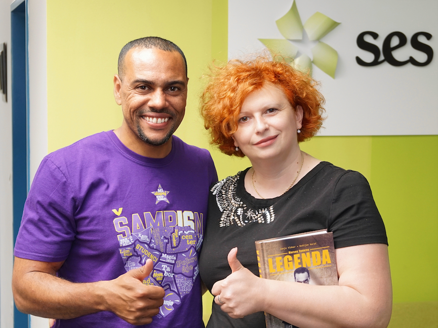 Marcos Tavares s center managerko Europarka Simono Mandl. (foto Bojan Mihalič)