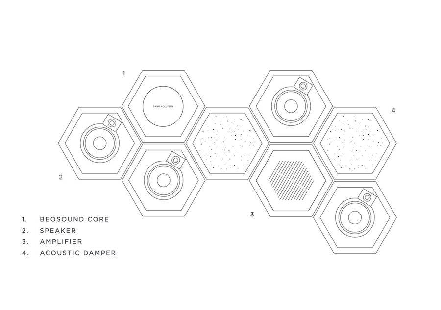 Brezžični zvočniki studia Bang & Olufsen so na voljo v črni, sivi, olivni, rjavi in rožnati barvi. Osnovni set osmih komponent vsebuje štiri zvočnike, dva dušilca, ojačevalnik zvoka in centralni sistem, ki zagotavlja blootooth povezavo. Poleg kakovostne glasbene izkušnje, zvočniki omogočajo izboljšavo akustike v celotnem prostoru, tudi če je sistem ugasnjen.