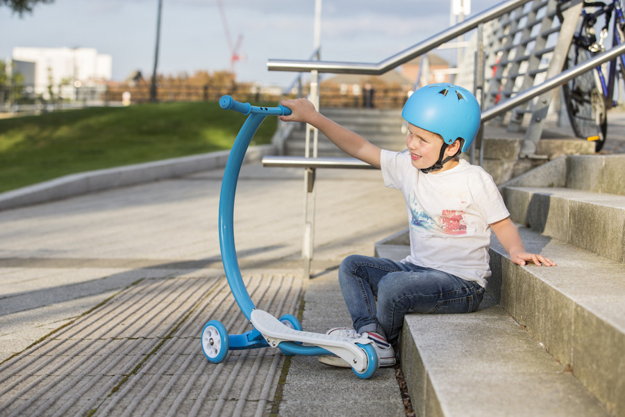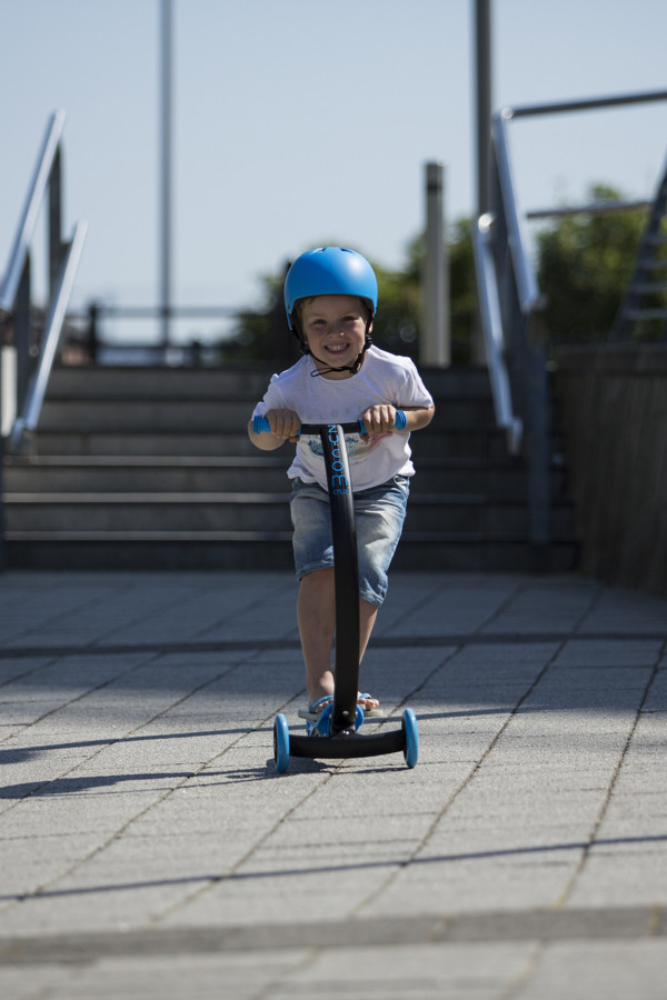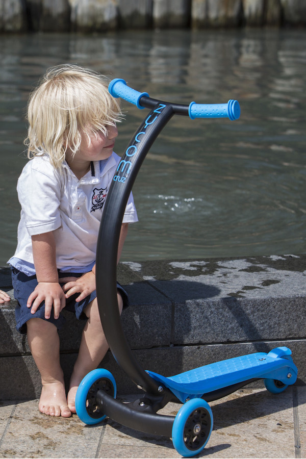 Minimalističen dizajn z gladkimi linijami brez robov in širokim stojiščem, ki ne drsi, naredi vožnjo stabilno in varno. Za zabavno vijuganje poskrbi posebna zasnova, ki omogoča zavoje ob nagibu na eno ali drugo stran. Pomoč pri preveliki hitrosti ali oviri na poti malčku nudi zadnja zavora za hitro zaustavitev. Cena: 69,95 evra.