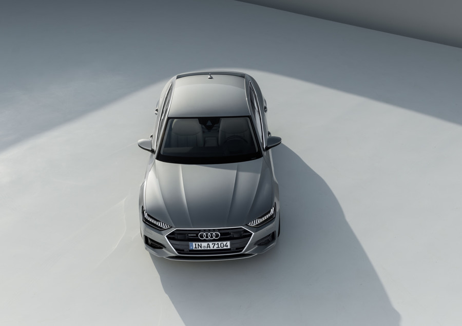 Spredaj pozornost pritegnejo v primerjavi z Audijem A8 širši, niže umeščeni enodelni okvir mreže hladilnika, ozki žarometi, markantno poudarjene odprtine za dovod zraka in nizki sprednji del. Žarometi so na voljo v treh različicah, pri srednji in najvišji ravni opreme je svetlobna grafika povsem v znamenju digitalizacije: 12 svetlečih segmentov, razporejenih drug ob drugem in ločenih z ozkimi vmesnimi prostori, spominja na binarni sistem s števkama 0 in 1. Najvišja raven opreme vključuje HD matrične LED-žaromete z Audijevimi laserskimi lučmi.