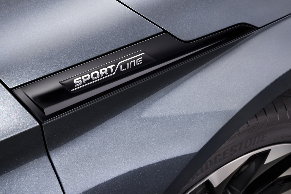 Pri Škodi to ime že tradicionalno pripada modelom s športnim videzom in dinamičnimi voznimi lastnostmi. Z modelom Enyaq Sportline iV bo Škoda v prihodnje to modelsko različico ponudila tudi za svoj prvi popolnoma električni SUV, in sicer za tri pogonske možnosti. Škoda Enyaq Sportline iV 60 ima na zadnji premi elektromotor z močjo 132 kW in največjim navorom 310 Nm. Njegova baterija s kapaciteto 62 kWh (neto 58 kWh) omogoča doseg do več kot 400 kilometrov po kriterijih WLTP. Enyaq Sportline iV 80, ki ima baterijo s kapaciteto 82 kWh (neto 77 kWh), ima po kriterijih WLTP doseg več kot 520 kilometrov, z motorjem na zadnji premi pa doseže moč 150 kW. Enako baterijo ima tudi Enyaq Sportline iV 80x, ki pa ima še en elektromotor in z njim štirikolesni pogon; skupno lahko razvije moč 195 kW in največji navor 425 Nm, ki se prenaša na oba kolesna para. Njegov doseg po kriterijih WLTP znaša 500 kilometrov.
