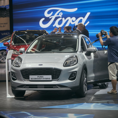 V prvi polovici leta se je Ford zavezal, da bo pri vsakem novem modelu osebnega vozila v Evropi ponudil tudi elektrificirano različico. Iz Fordove palete elektrificiranih vozil si lahko obiskovalci salona v Frankfurtu ogledajo dva športna terenca – novo Kugo Plug-In Hybrid in novega Explorerja Plug-In Hybrid, kombi za prevoz oseb Tourneo Custom Plug-In Hybrid ter novi kompaktni ‘crossover’ Puma EcoBoost Hybrid in karavan Ford Mondeo Hybrid.
