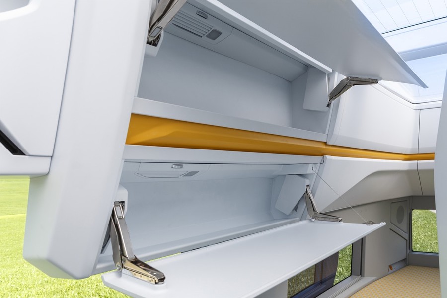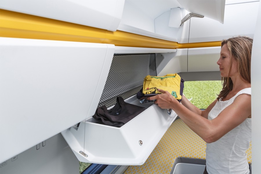 Za najboljši izkoristek prostora skrbijo pametne rešitve kot so številni stenski predali, ki spominjajo na tiste v letalu, t.i. izvlečna “mokra soba” v kateri se nahajajo zložljiv umivalnik, tuš in stranišče ter kuhinjski pult, v katerega se elegantno spusti sodoben kuhalnik, kadar ni v uporabi. Za piko na i se v eni od omar skriva kavni aparat, celoten avtodom pa ponuja talno gretje in štirikolesni pogon, ki skrbi, da lahko s svojim mobilnim stanovanjem potujemo praktično kamorkoli.