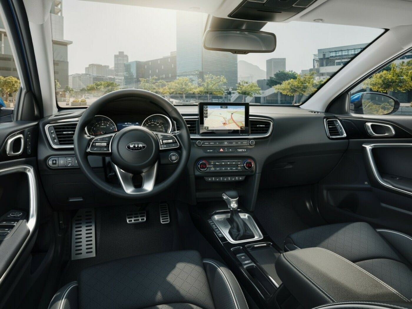 V notranjosti je Ceed bolj ergonomski kot kdajkoli prej, povsod po kabini pa so uporabljeni visokokakovostni materiali. Dobil je bolj vodoravno postavljeno armaturno ploščo, ki ustvari bolj eleganten videz. Oblikovanje spredaj sedečim omogoča več prostora v predelu nog, zaradi boljše preglednosti spredaj pa nudi boljši občutek odprtosti. Armaturna plošča je razdeljena na dva dela – zgornjega s ‘plavajočim’ zaslonom na dotik in zabavno-informacijskim sistemom in spodnjega, kjer so stikala za nastavitev avdio sistema, ogrevanja in prezračevanja. Sredinska konzola je rahlo obrnjena proti vozniku, za lažjo uporabo med vožnjo. V notranjosti prevladujejo sodobni in na otip mehki materiali, ki subtilno ustvarjajo prefinjen ambient v kabini. Kupci lahko izbirajo med kovinskimi zaključki ali tistimi iz satenastega kroma, prav tako je možno izbirati med oblazinjenjem iz tkanine, umetnega usnja ali naravnega usnja. Kot opcija sta na voljo tudi v usnje odet volanski obroč in prestavna ročica.