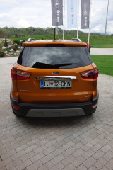 EcoSport z izboljšano dinamiko ter robato oblikovano zunanjostjo je na voljo v 12 smelih barvah in nudi še več možnosti za osebni pečat – vključno s kontrastno barvo strehe, ki zajema tudi stebričke oken, zgornji del okvirja vrat, strešni spojler in zunanji ogledali. Na uporabnika osredotočena prestižnejša nova notranjost zagotavlja vrhunsko izkušnjo tako za voznika kot za sopotnike in pritegne z lebdečim sredinskim 8-palčnim zaslonom na dotik, ogrevanim volanom in domišljenimi rešitvami za shranjevanje, kot je nastavljivo dno prtljažnika.