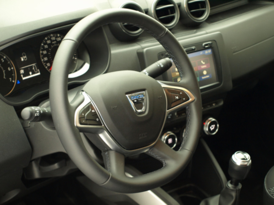 Notranjost je bila deležna največ sprememb. Armaturna plošča ima sedaj obliko črke S, s čimer je ta bolj obrnjena k vozniku. K vozniku usmerjen zaslon naprave MediaNav Evolution je sedaj 74 mm višje in se lahko pohvali z eno najmanjših razdalj med očmi in zaslonom na trgu. Prenovljen je tudi sistem upravljanja s klimatsko napravo, katera ima sedaj opcijo avtomatskega delovanja. Nov volan je debelejši, ergonomičnejši in sedaj tudi nastavljiv tako po višini, kot tudi globini. Omenjeni volan nakazuje nove smernice, postopoma pa se bo začel pojavljati tudi v ostalih modelih Dacia. Je elektrohidravličen, s čimer za 35 odstotkov zmanjšuje silo, ki je potrebna za njegovo sukanje, kar se kot dobrodošlo izkaže zlasti pri parkiranju. Poleg tega ima za šest odstotkov manjše prenosno razmerje, zaradi česar je volan bolj odziven, okretnost pa večja tako pri ostrem zavijanju v mestu kot hitri vožnji po ovinkasti cesti. Volanski sistem ima progresivno pomoč, katere raven je odvisna od hitrosti avtomobila, kar prispeva k boljši smerni stabilnosti na avtocesti. Hkrati znatno izboljša odzivnost volana, še zlasti pri terenski vožnji.