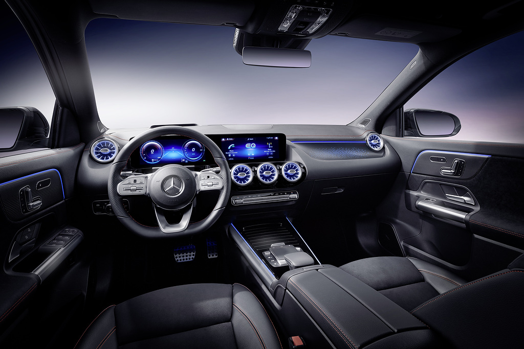 EQA je del ekosistema električne mobilnosti, ki vozniku pomaga doseči cilj, pri tem imata ključno vlogo inovativni informacijsko-razvedrilni sistem MBUX in aplikacija Mercedes me. Vse prikaze in nastavitve, značilne za EQ, se krmili prek menija MBUX EQ na visokoločljivostnem zaslonu na dotik. Uporabniki lahko na primer vklopijo funkcijo predklimatizacije, prilagodijo nastavitve polnjenja in upravljajo navigacijski sistem z električno inteligenco ter funkcijo Mercedes me Charge. Zaradi optimizirane navigacije EQ uporabniki vozil Mercedes-Benz zlahka najdejo polnilne postaje, Mercedes me Charge pa jim omogoča priročen dostop do polnilnih postaj številnih ponudnikov tudi v tujini. Mercedes me Charge trenutno v Sloveniji sicer še ni na voljo.
