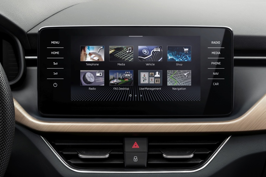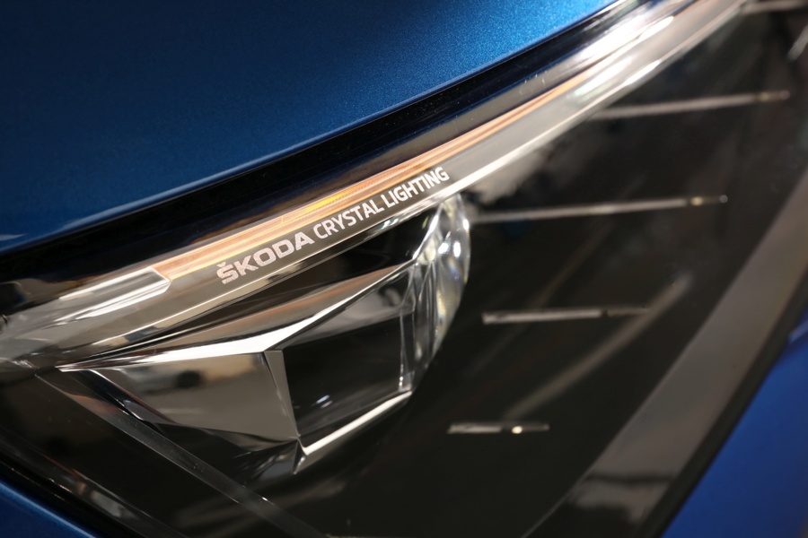 Sprednji žarometi so ravni in oblikovani kot puščica. Pripišemo ji lahko športno-eleganten dizajn, kot prvi serijski model v Evropi – poleg Kamiqa – pa ima na pokrovu prtljažnika namesto logotipa napis "ŠKODA". Ločene črke napisa pridejo na podaljšanem zadnjem steklu paketa Emotion ali paketa Image še posebno do izraza. Opcijsko so na voljo žarometi in zadnje luči s celostno LED-tehnologijo, dinamični zadnji smerniki, (opcijsko) aerodinamično optimizirana aluminijasta platišča (vsa platišča so na voljo v dveh različicah) dimenzije do 18 palcev ter dvanajst različnih zunanjih barv.