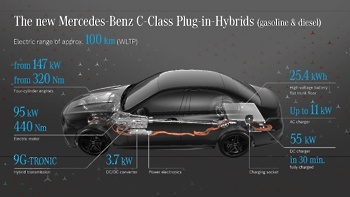 To pomeni, da se novi Mercedes razreda C sooča z bolj raznoliko konkurenco kot kdaj koli prej. Razred C se predstavlja z novo športno podobo, tehnologijo v notranjosti ki izhaja iz razreda S, in obsežno ponudbo elektrifikacije v celotnem spektru pogonskih sklopov. Priključni hibridi lahko sedaj na izključni električni pogon prevozijo razdalje do 100 kilometrov (WLTP).