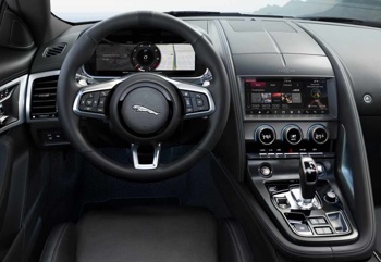 Vpogled v notranjost razkrije še več posodobitev. Jaguar F –Type sledi trenutnemu trendu sprejemanja digitalne instrumentne plošče, ki nadomešča običajne, analogne merilnike. Infozabavni sistem se pohvali z razširitvijo Apple CarPlay in Android Auto, strojna oprema sistema pa je sedaj sposobna tudi posodabljanja preko mobilnega omrežja.