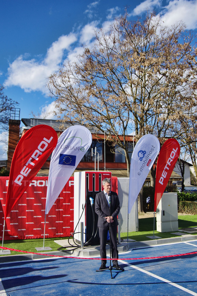 Za odprtje prvih dveh od načrtovanih devetih hitrih DC polnilnih postaj v Ljubljani, je sredstva prispevalo tudi podjetje BMW Group, saj so eden glavnih ponudnikov električnih vozil pri nas,s tem pa želijo prispevati k hitrejšem razvoju polnilne infrastrukture in izboljšanju uporabniške izkušnje. V Ljubljani bo sicer v sklopu projekta Urban-e do konca meseca marca poleg dveh hitri, postavljenih tudi devet od načrtovanih 47 klasičnih AC polnilnih postaj. Današnje odprtje tako predstavlja pomemben del pri vzpostavitvi enovitega omrežja električnih polnilnic in intermodalne platforme za urbano mobilnost. Ob tej priložnosti je župan MOL Zoran Janković povedal: »Odprtje prvega vozlišča za hitro polnjenje je zelo pomembno za Ljubljano in njene prebivalce, kot tudi za turiste, ki obiščejo naše mesto. S to pridobitvijo si Ljubljana le še krepi naziv Zelena prestolnica. Zelo cenim tudi inovativnost in pogum Petrola, pri uvajanju sprememb, veseli pa me tudi sodelovanje med prestolnicami v sklopu projekta.«