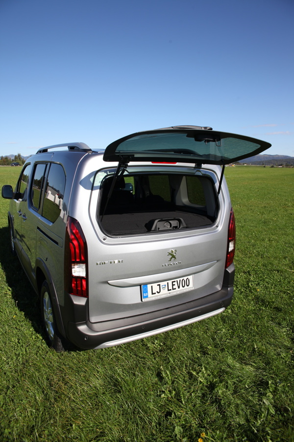 Z optimizacijo arhitekturne zasnove je možno izbirati med dvema izvedenkama in sicer s 5 ali 7-sedeži, ki so na voljo pri obeh dolžinah: standardna (4,40 m) in podaljšana (4,75 m). Slednja ima daljšo skupno dolžino in tudi daljšo medosno razdaljo. Pri podaljšani izvedenki se lahko oba individualna sedeža v tretji vrsti drsno pomikata, poleg tega pa ju je možno tudi odstraniti (kot pri standardni izvedenki). Sovoznikov sedež se lahko preklopi v tla, kar omogoča enostaven prevoz daljših predmetov. Prtljažni prostor vozila PEUGEOT RIFTER nudi pri 5-sedežni standardni izvedenki 775 litrov prostornine pod polico, pri podaljšani izvedenki s preklopljenimi sedeži pa vse do 4.000 litrov pod stropom. Polico za prtljago se lahko namesti v dva položaja ter temu primerno razporedi prostor v prtljažniku. Pospravimo pa jo lahko za sedeže v 2. vrsti.